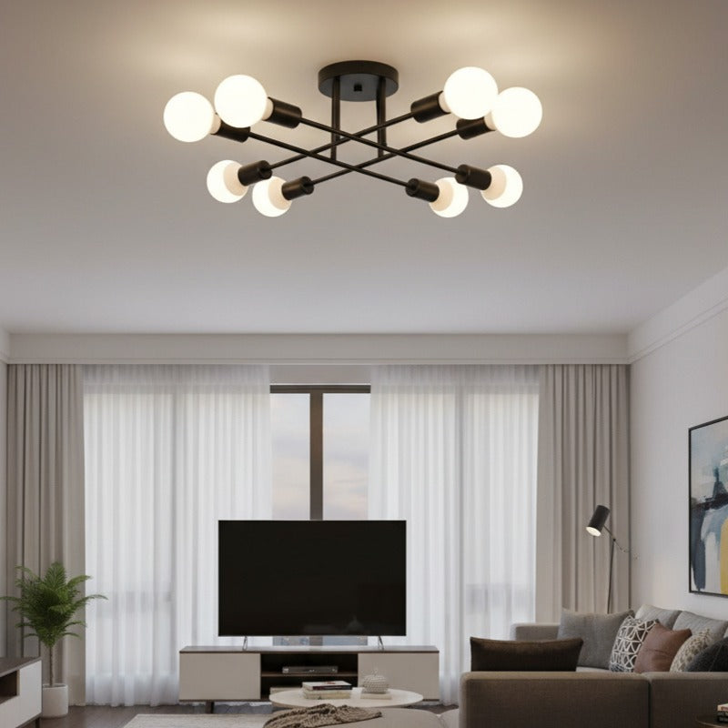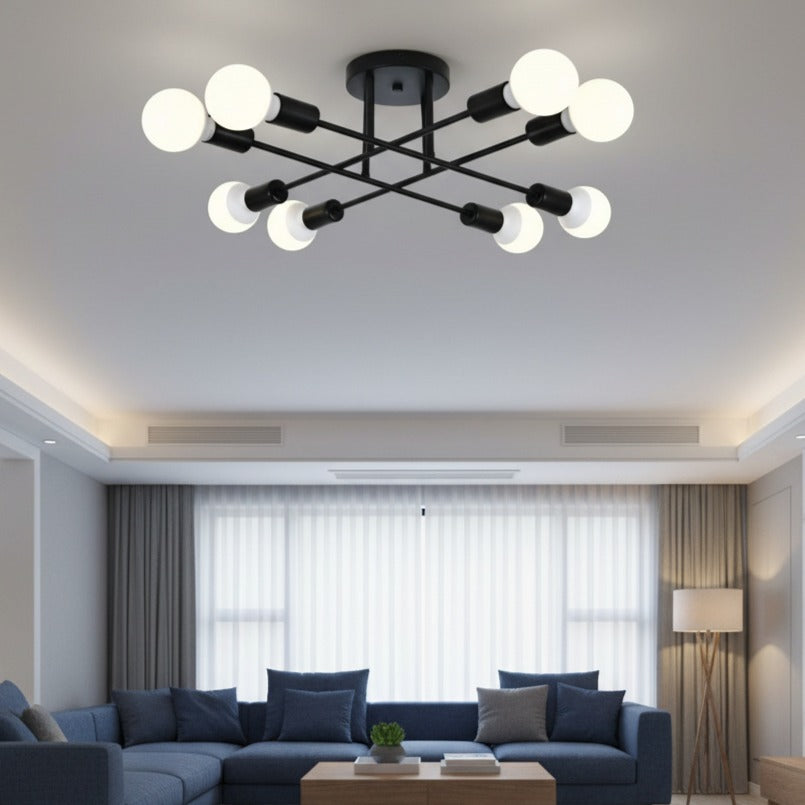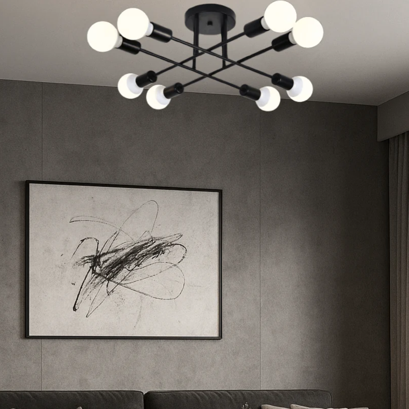 Lustra MEDEO aduce un plus de stil și personalitate oricărui spațiu. Cu un design geometric inspirat din formele industriale moderne, corpul dispune de 8 brațe metalice care oferă o distribuție uniformă a luminii.