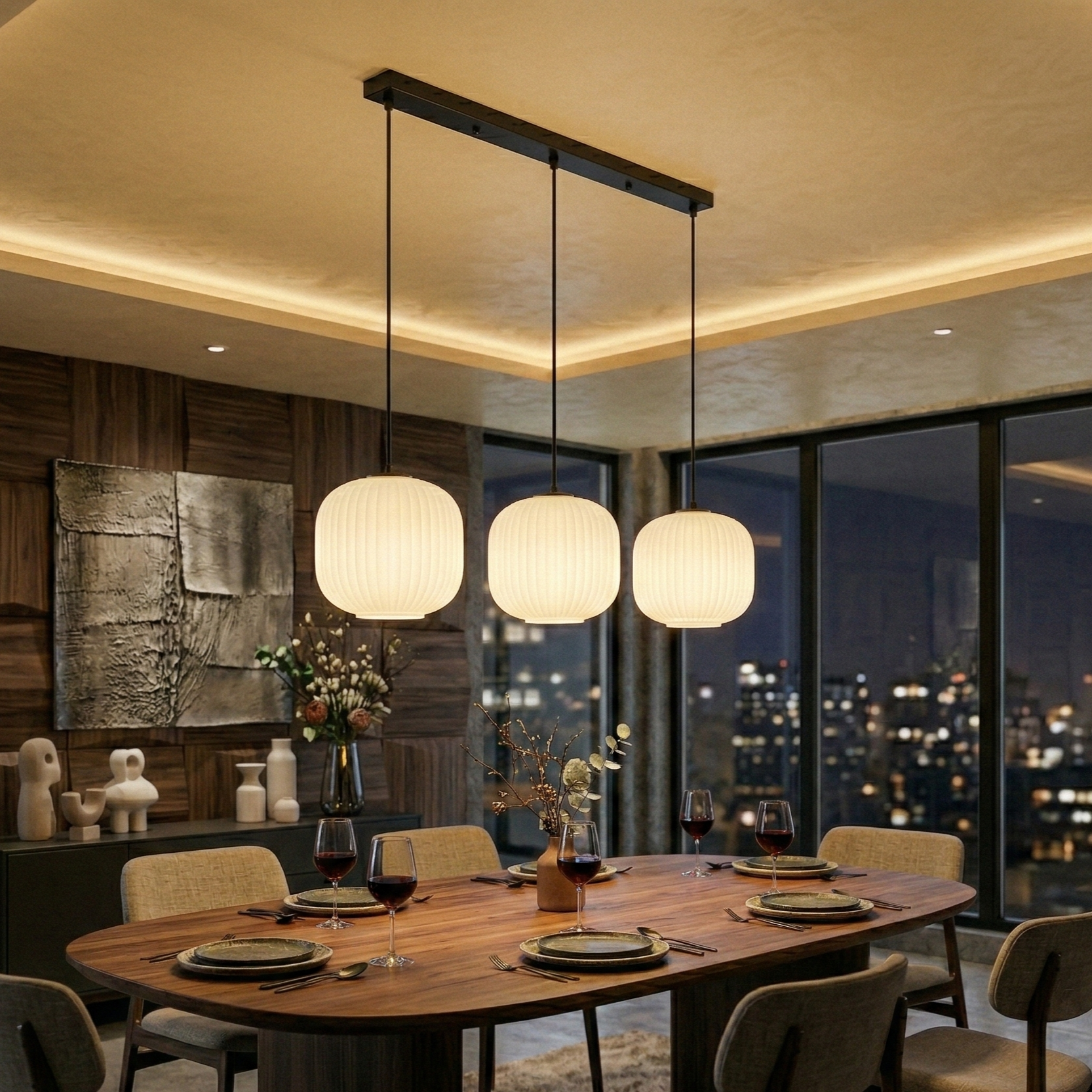 - Living și Sufragerie: Ideală pentru a crea un punct central de atracție în camera de zi sau sufragerie, oferind o iluminare adecvată pentru diverse activități.