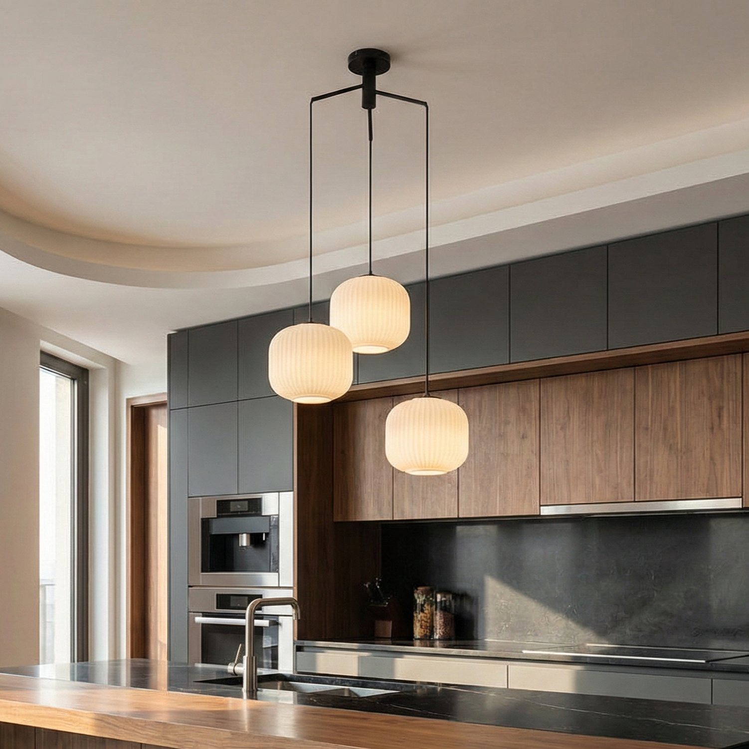 - Cabluri Reglabile: Cablurile fiecărui abajur se pot ajusta pe înălțime individual, oferindu-ți flexibilitatea de a personaliza aspectul și funcționalitatea lustrei în funcție de nevoile tale.