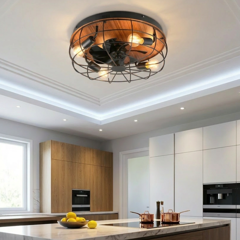 Lustra Trondheim Black & Wood este alegerea ideală pentru cei care își doresc un iluminat eficient, dar și un confort sporit în locuință, datorită ventilatorului integrat discret.