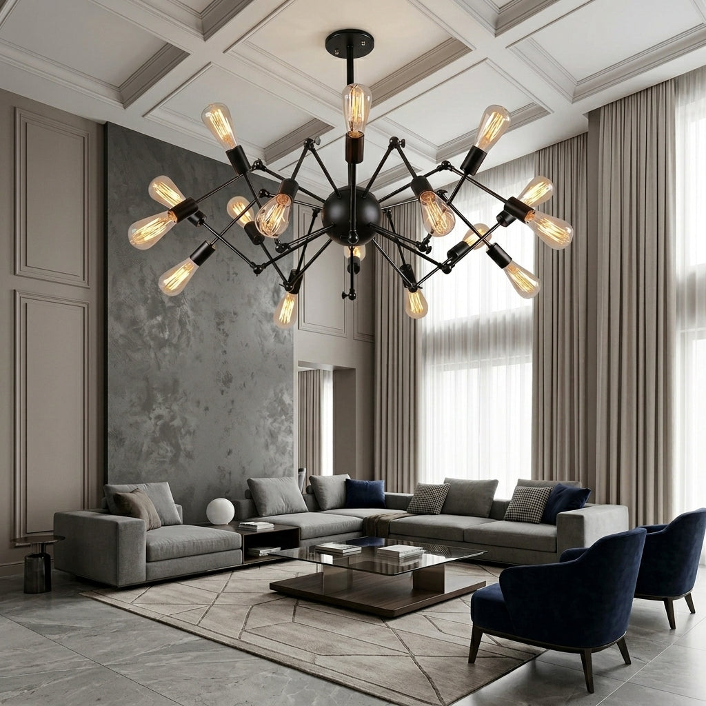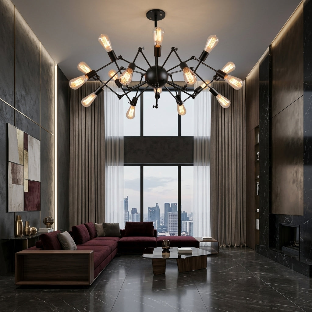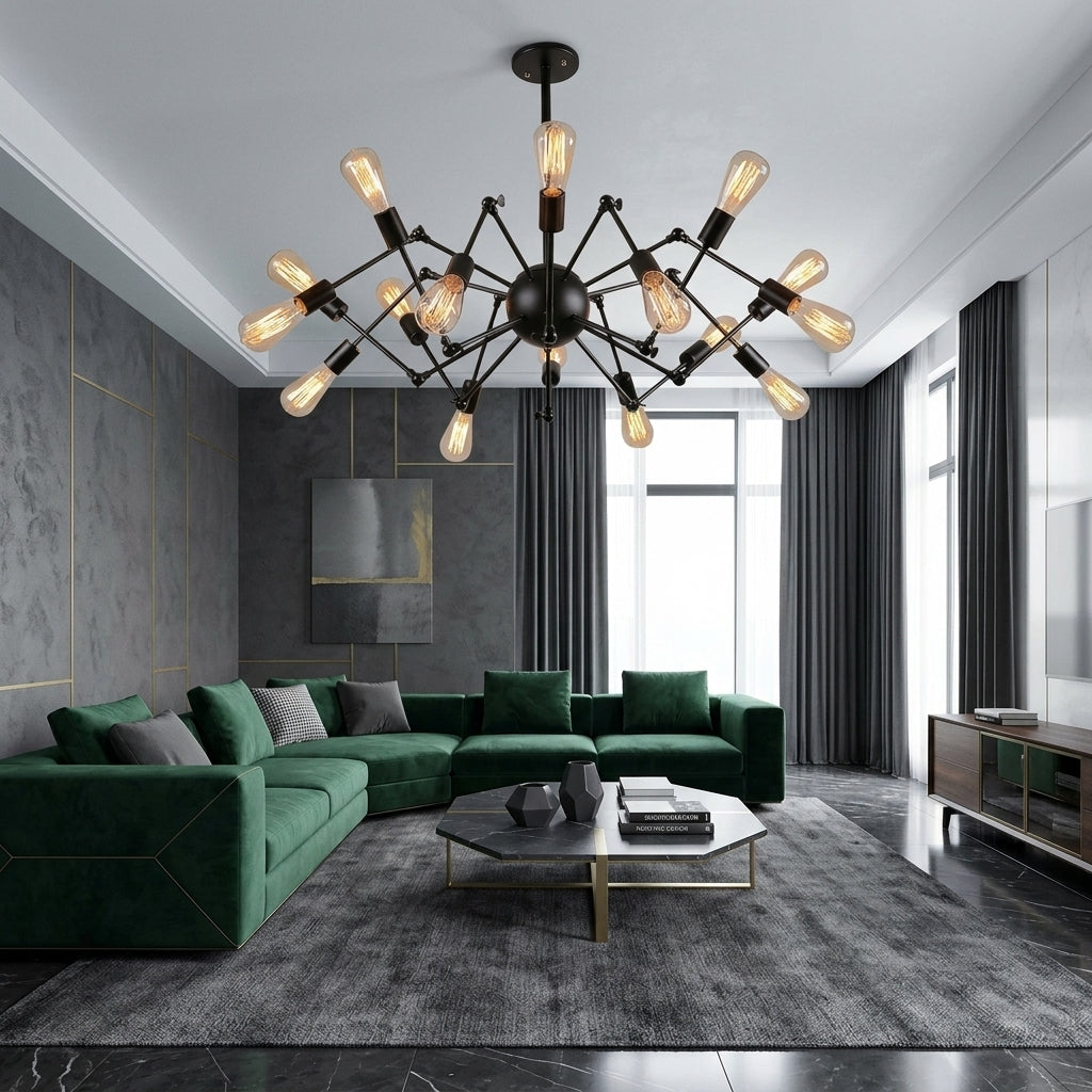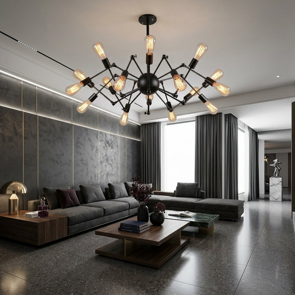 Lustra Black Widow 16xE27 are un design spectaculos, asemănător cu un păianjen, care atrage imediat atenția și oferă un aer modern-industrial oricărei încăperi. Cu 16 socluri E27, asigură o iluminare puternică și uniformă, fiind ideală pentru living, dining sau spații ample. Este alegerea perfectă pentru cei care vor să aducă un element de decor original și impunător în locuință.