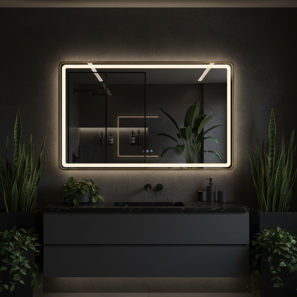 ✔ Design elegant cu rama aurie din aluminiu si iluminare perimetrala