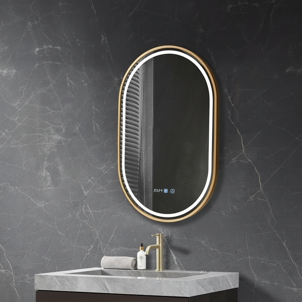 Oglinda LED RIVEN 50x80CM 3 Lumini, Functie Dezaburire, Ceas, Touch