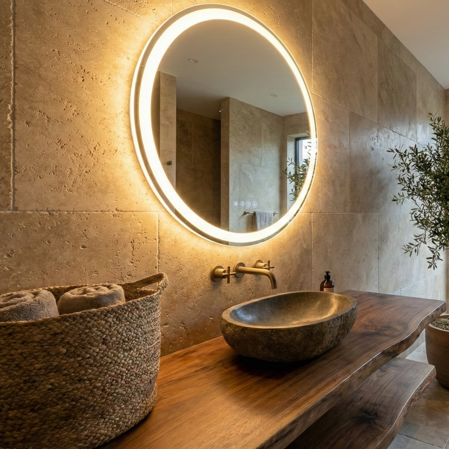 Oglinda LED Rotunda VENESSIA 60CM este conceputa pentru bai moderne, unde designul minimalist si functionalitatea avansata sunt esentiale. Fabricata din oglinda argintie fara cupru, cu grosime de 5 mm, ofera o reflexie clara, rezistenta sporita la umiditate si durabilitate in timp.