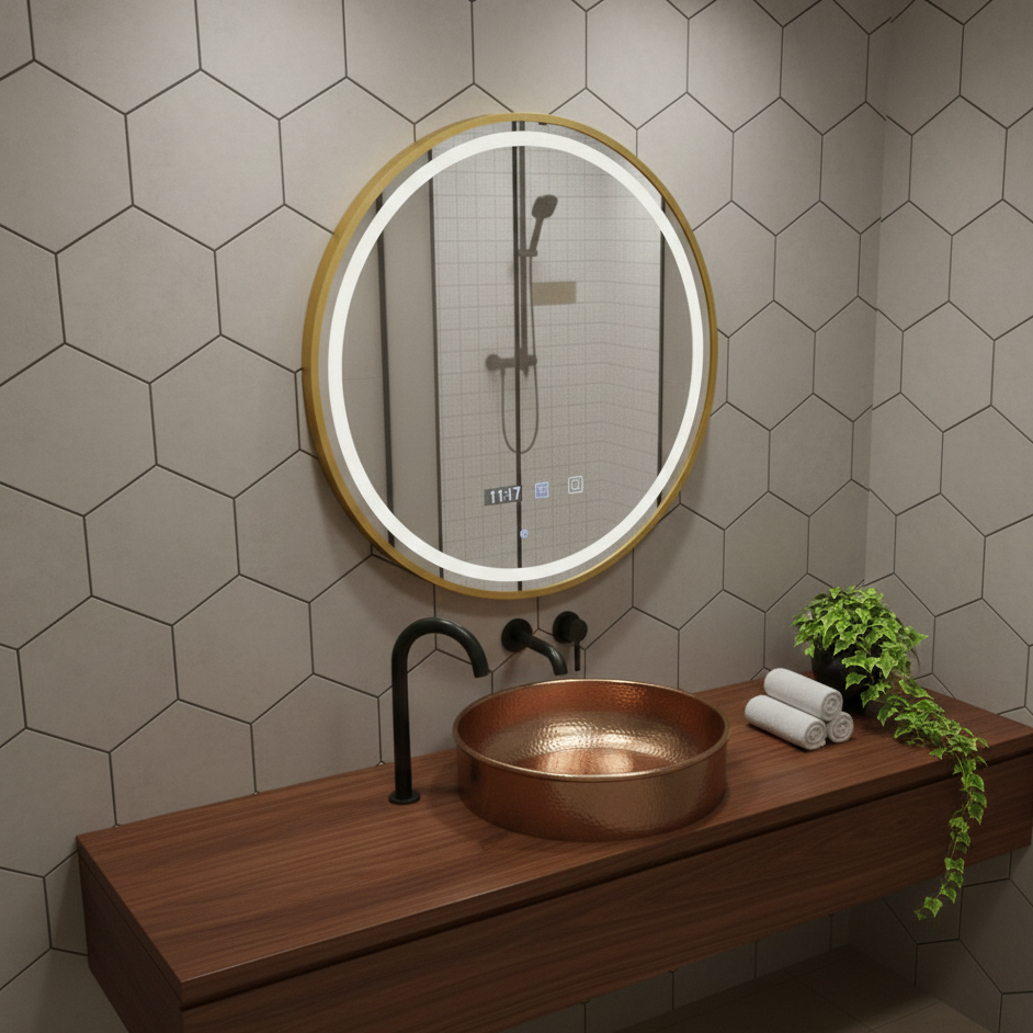 Transformă-ți ritualul zilnic de îngrijire într-o experiență de lux cu Oglinda LED Aura Gold. Cu un design circular minimalist și o ramă rafinată din aluminiu Auriu periat, această piesă devine instantaneu punctul focal al oricărei băi moderne.
