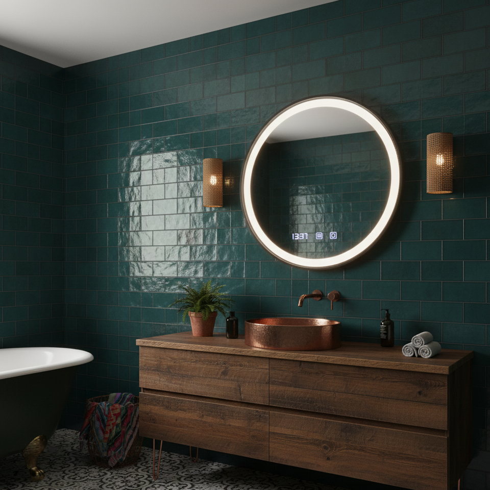 • Functie de Dezaburire Inteligenta: Uita de oglinda incetosata. Sistemul de incalzire integrat mentine suprafata clara, oferindu-ti vizibilitate maxima imediat ce iesi din dus.