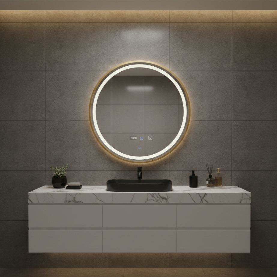 Transformă-ți ritualul zilnic de îngrijire într-o experiență de lux cu Oglinda LED Aura Gold. Cu un design circular minimalist și o ramă rafinată din aluminiu Auriu periat, această piesă devine instantaneu punctul focal al oricărei băi moderne.
