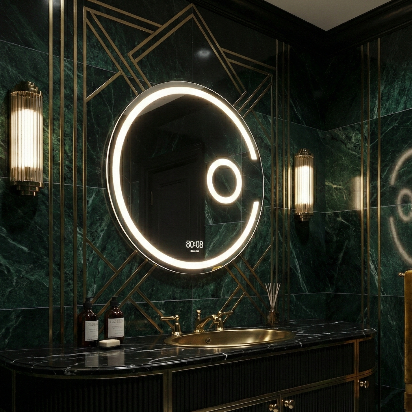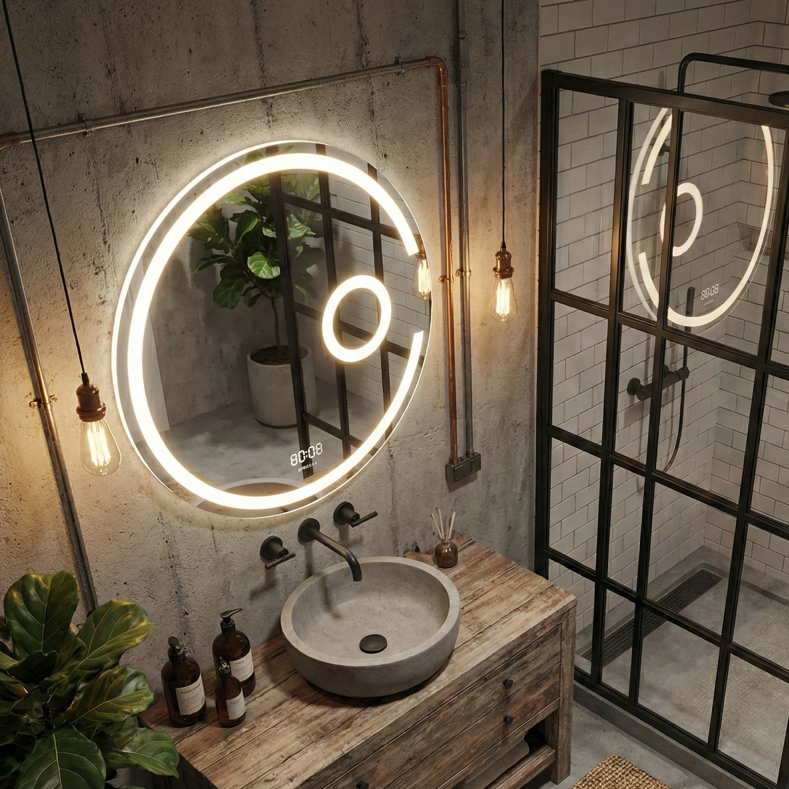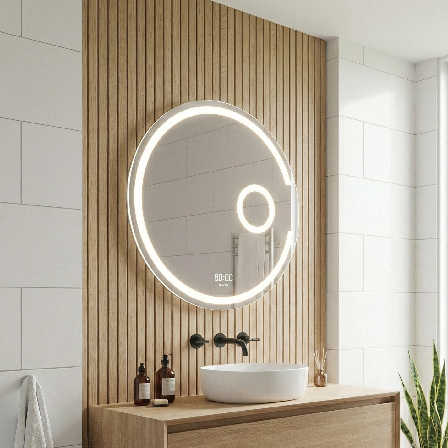 Oglinda LED RIFLESSO este alegerea ideala pentru cei care cauta un design rotund elegant, iluminare adaptabila si functionalitati inteligente intr-un singur produs.