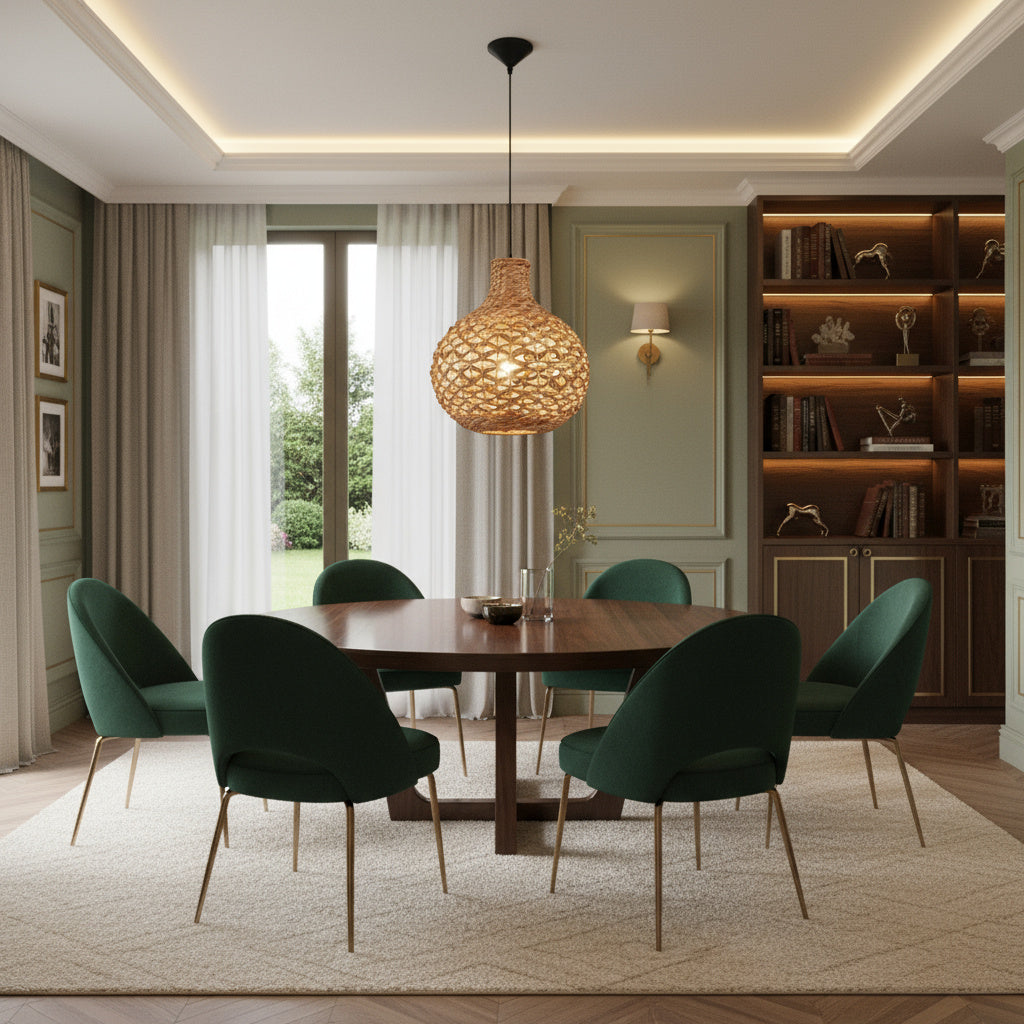 Pendulul foloseste o singura sursa de lumina E27 (neinclusa), oferind flexibilitate in alegerea becului potrivit – de la lumina calda ambientala pana la una neutra functionala. Materialul natural si finisajul atent lucrat il transforma intr-un element decorativ versatil, usor de integrat in spatii moderne, scandinave sau rustice.