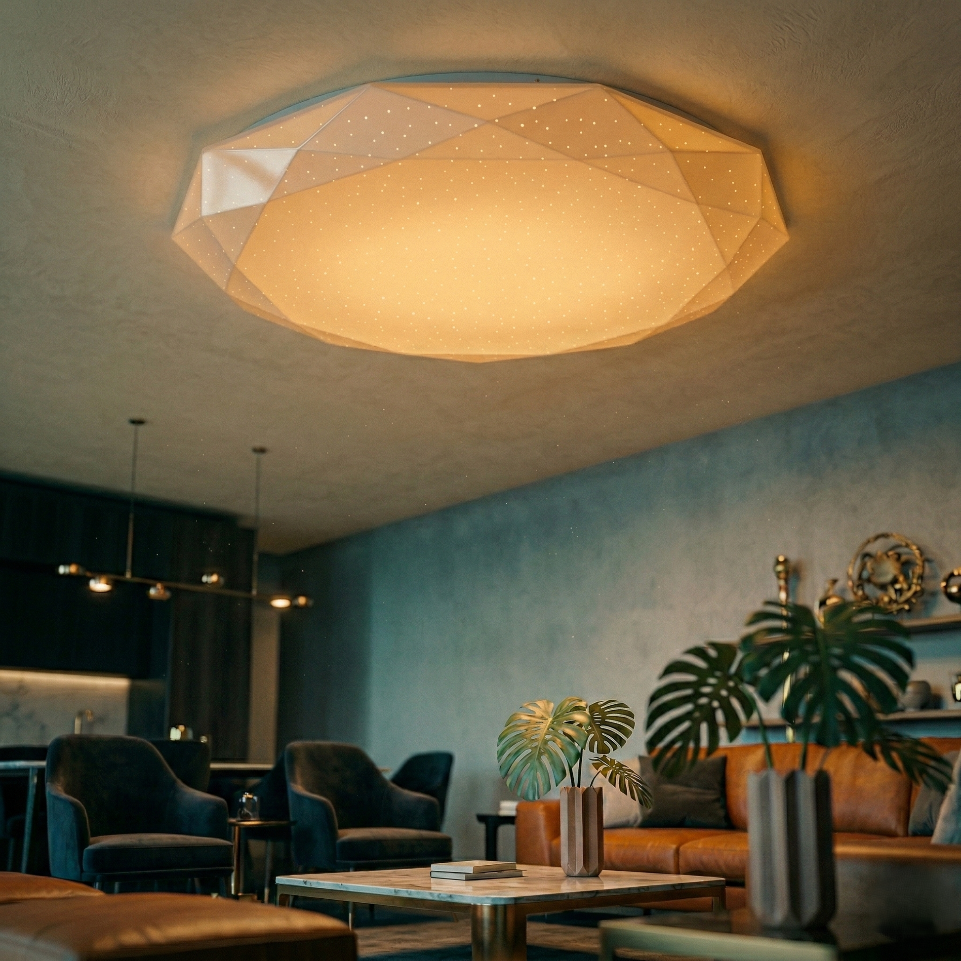 Plafoniera LED 44W Diamond Echivalent 500W 49CM este alegerea ideala pentru iluminarea moderna a locuintei, oferind un design elegant cu efect discret tip „cer instelat” si un flux luminos puternic, potrivit atat pentru living, cat si pentru dormitor, hol sau birou.