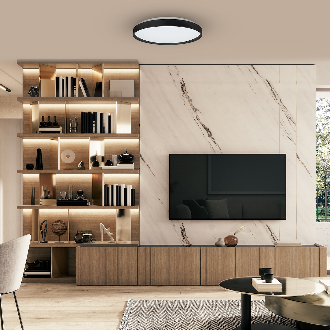 Această plafonieră unică, cu diametrul de 390 mm, combină designul modern cu magia culorii. RINGO RGB oferă o gamă completă de culori RGBW, ceea ce înseamnă că poți personaliza iluminatul în funcție de starea ta de spirit și nevoile tale. Toate acestea sunt controlate de o telecomandă, ceea ce face ca schimbarea culorilor să fie simplă și plăcută.