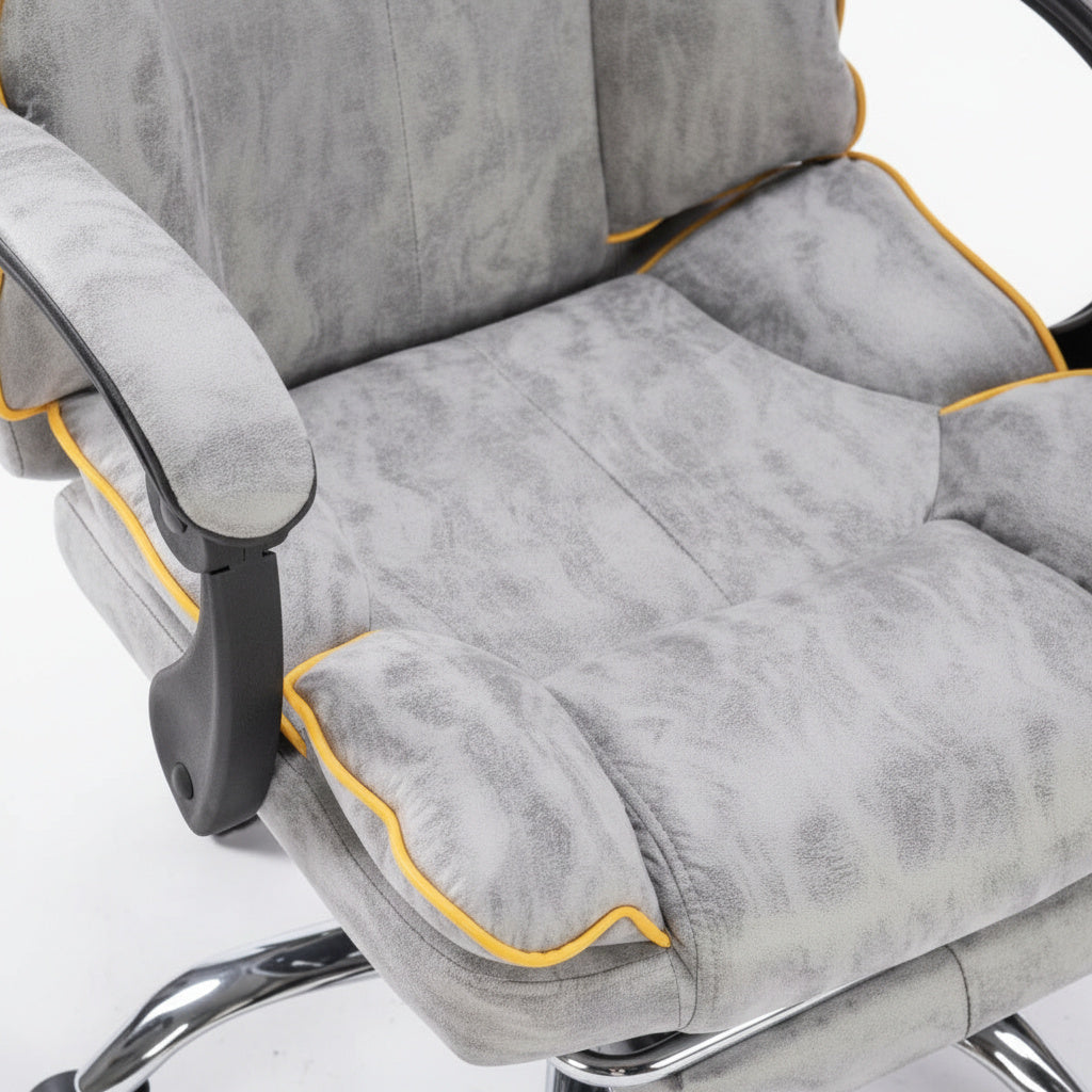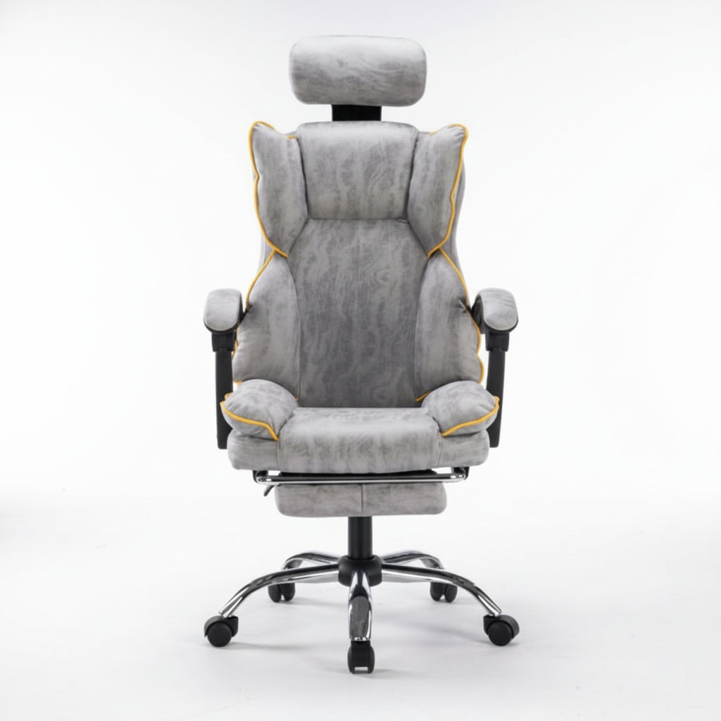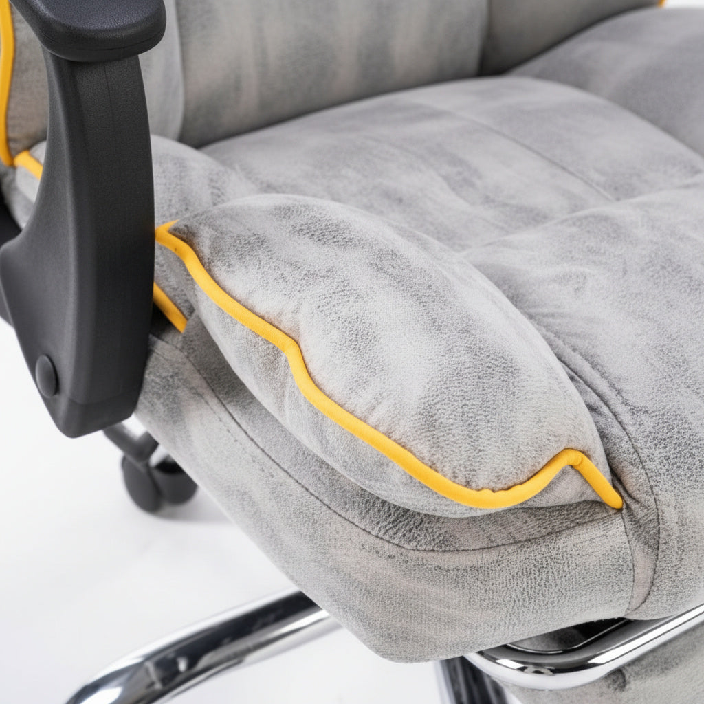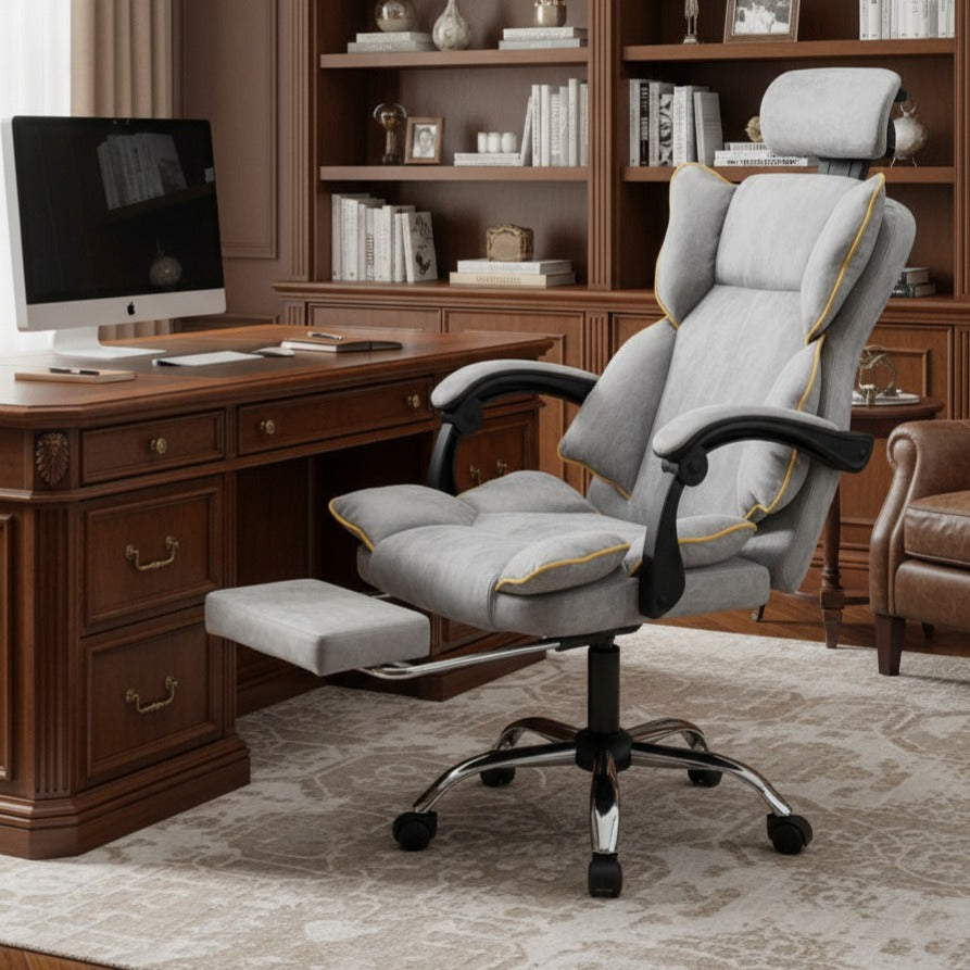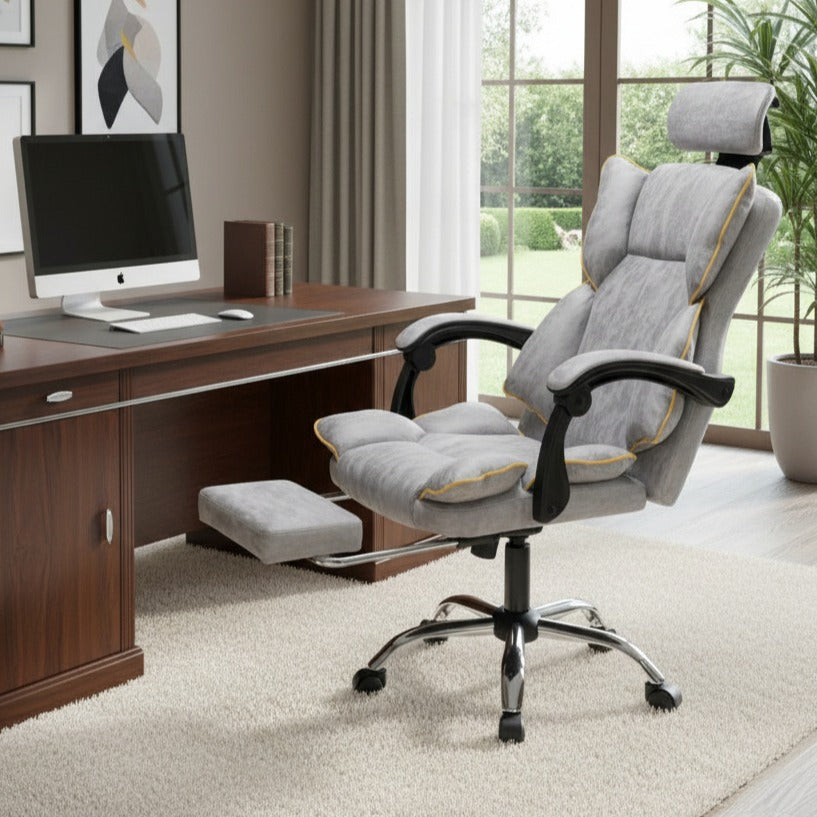 Scaun de Birou Reglabil Gri Deschis WF-807 cu Suport Picioare | Piele Ecologica