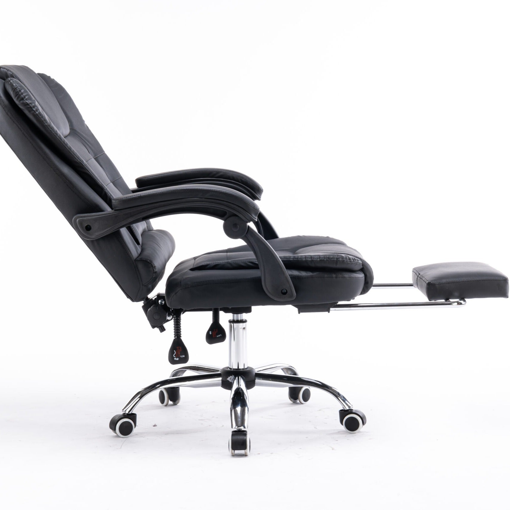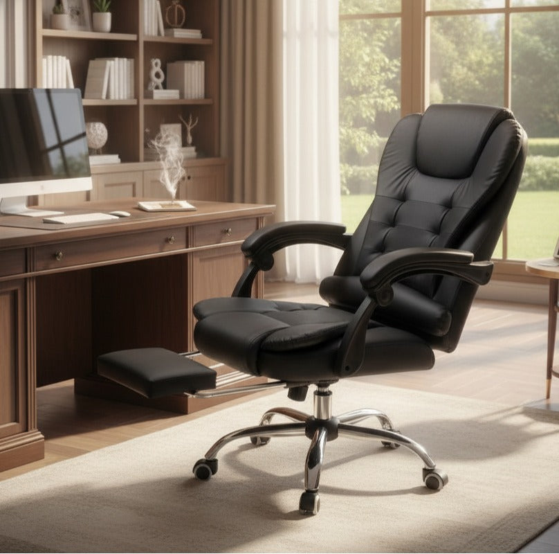 Scaun de Birou Reglabil Negru BOC-333 cu Suport de Picioare | Piele Ecologica