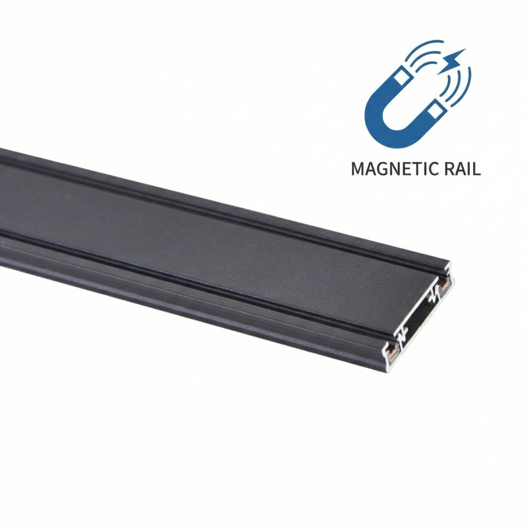 Sina magnetica neagra, cu lungimea de 1 metru, este o solutie moderna si versatila pentru sistemele de iluminat cu spoturi magnetice, ideala pentru interioare contemporane rezidentiale sau comerciale. Designul minimalist si profilul subtire permit integrarea discreta in orice tip de amenajare moderna.