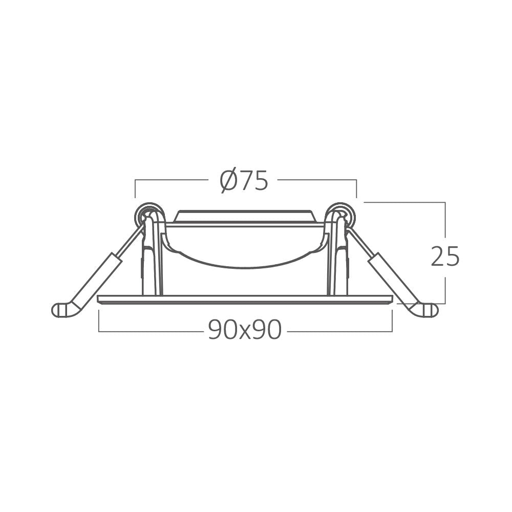 Dimensiunile sale compacte (90 × 90 mm, decupaj 75 mm) îl fac ușor de instalat și potrivit pentru multiple aplicații.