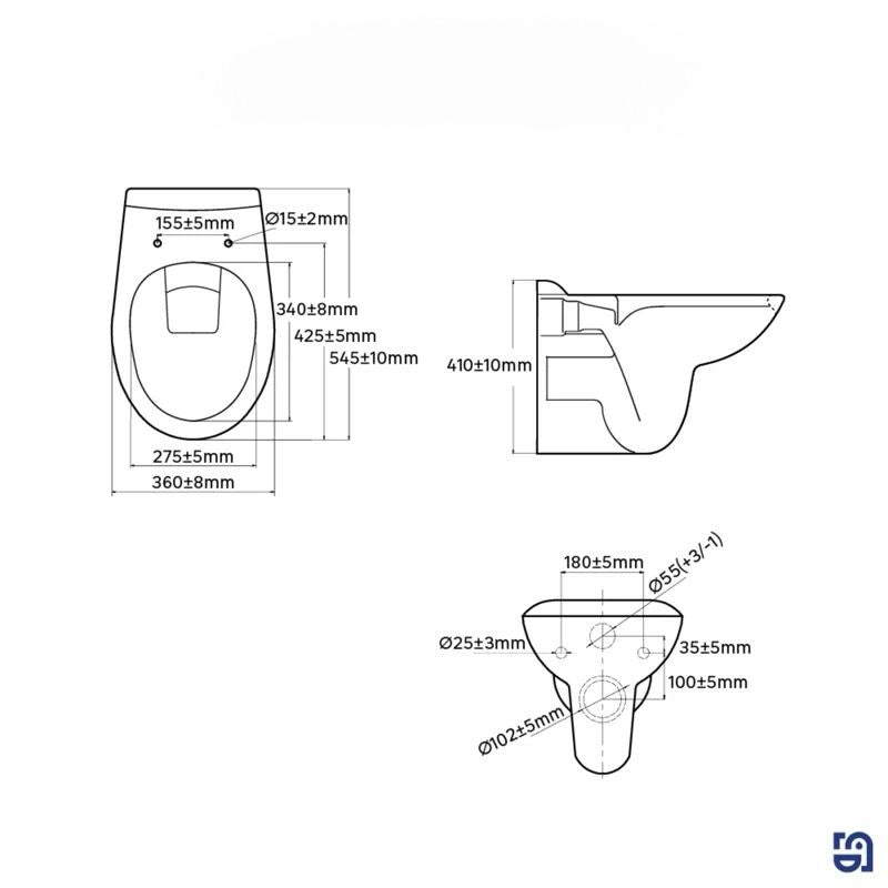 Vas WC Suspendat MONTE White 55 x 41 x 36 CM